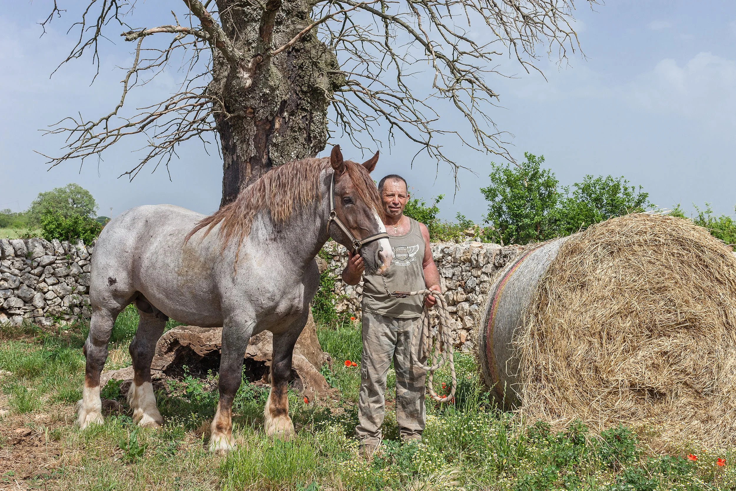 Based in the Puglian countryside, these images examine the everyday life of this agrarian landscape. The use of "numinosa" versus "luminosa" in the title of both exhibition and accompanying publication is not by accident but in reference to the Latin word, "numen," indicating some divine presence or nature associated with a particular place. "Numinosa" is a play on the English "numinous" and "luminous" and the Italian "nume" and "luminoso," made in hopes that this invented word points to the primal attachment between people and place in the sunny southern Italian countryside. In this ancient area, if you were told that the stone walls, pens, and shelters that divide and punctuate fields are naturally occurring, you could almost believe it, they seem so organically to grow from the earth. Likewise the people who work and shape the land can seem as manifestations of a rich and ancient spirit that permeates the region. As challenging as daily life in the countryside can be, the strength and grace of its stewards and the poetry of the spaces they create through cultivation can provide a glimpse of the numinous for those who are looking. Beautiful Puglia. Beautiful people.